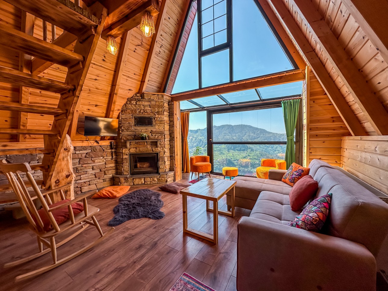-Bungalov evimiz şömineli ve cam tavanlı terası ile muhteşem vadi ve dağ manzarasına sahiptir.