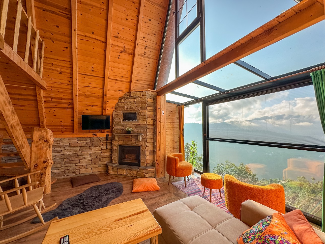 -Bungalov evimiz şömineli ve cam tavanlı terası ile muhteşem vadi ve dağ manzarasına sahiptir.