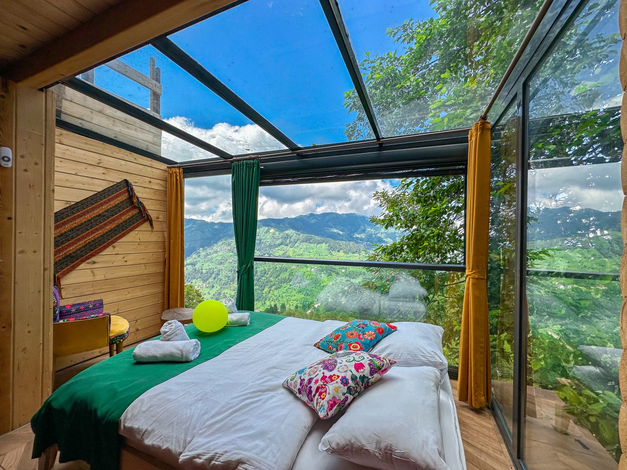 -Bungalov evimiz şömineli olup cam tavanlı terası ile muhteşem vadi ve dağ manzarasına sahiptir.