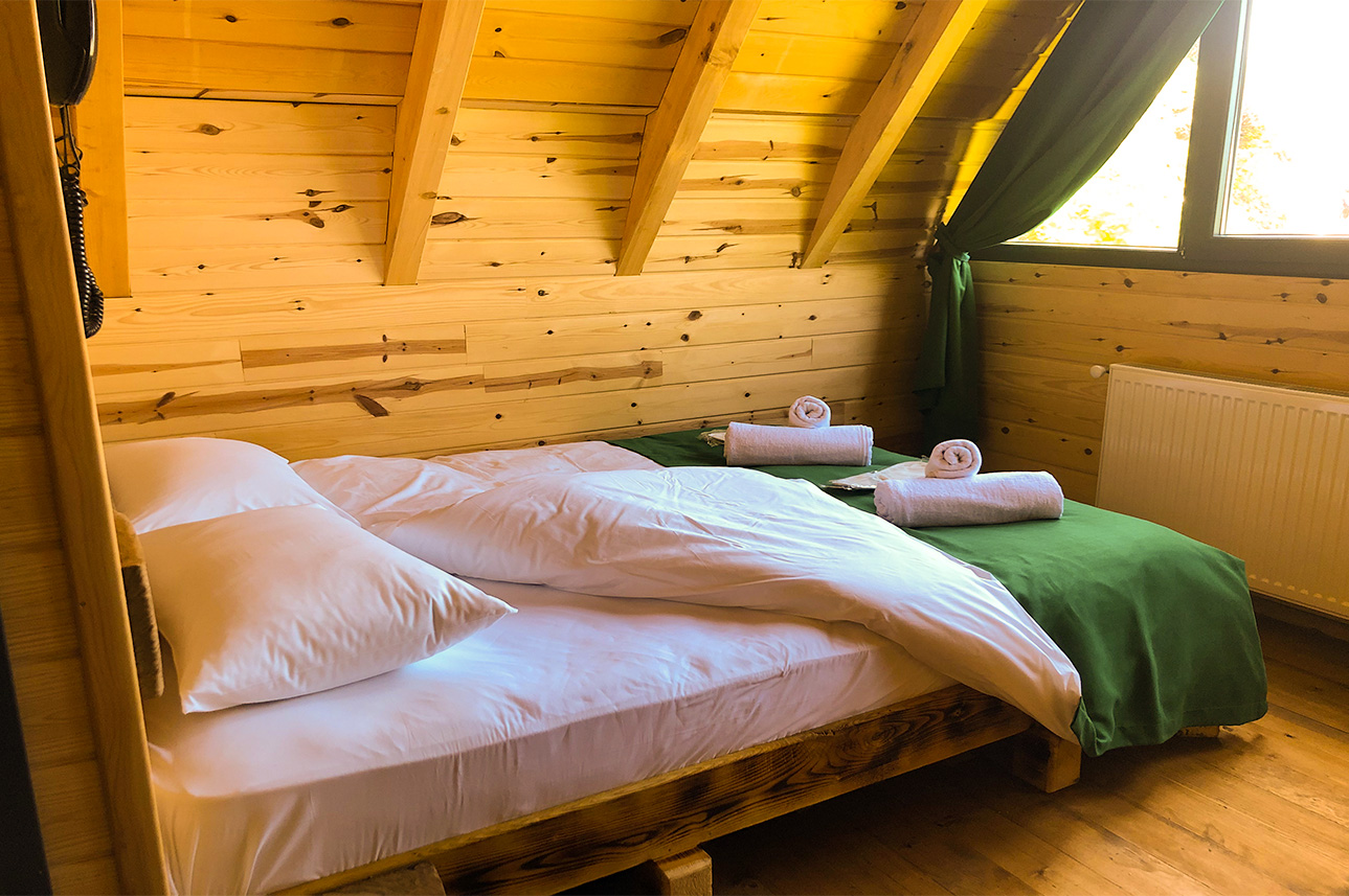 -Yatak başlıkları, avizeler ve yataklarımız ahşap olarak tasarlanmıştır.